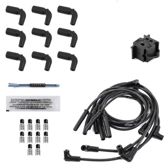 The 80104100 8.5mm Black Super Conductor Spark Plug Wire Set is a high-performance ignition wire set designed to deliver maximum spark energy to your engine. Its extremely low-resistance combined with the ability to suppress Electro Magnetic Interference is a combination that defies the common laws of physics. The conductor is wrapped in a unique helically wound design that provides a high degree of electromagnetic interference (EMI) suppression, minimizing radio frequency interference (RFI) and preventing unwanted signals from interfering with your engine's performance. And we use a copper alloy conductor due to it's great voltage carrying capabilities. The low resistance results in less loss of spark energy and more energy delivered to the spark plug. The conductor is wound extremely tight around a special center core.