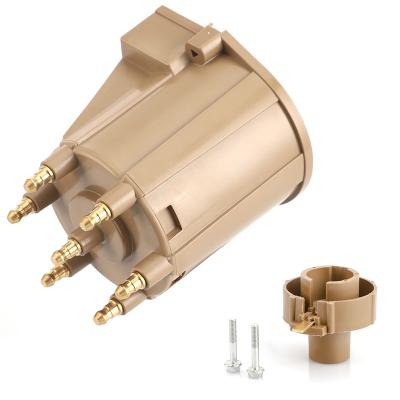 The Distributor Cap and Rotor Kit offers superior protection from "arc-thru" and crossfire. Features 60k V-rated alkyd compound, stress-relieved at molding to ensure stability. Brass inserts and steel rotor springs provide high spark energy flow.